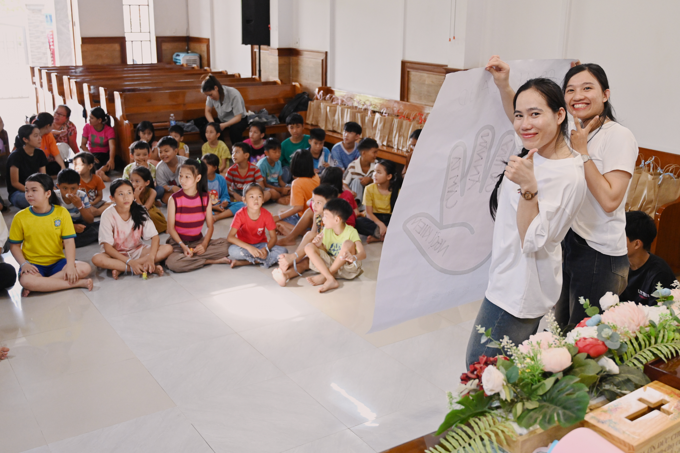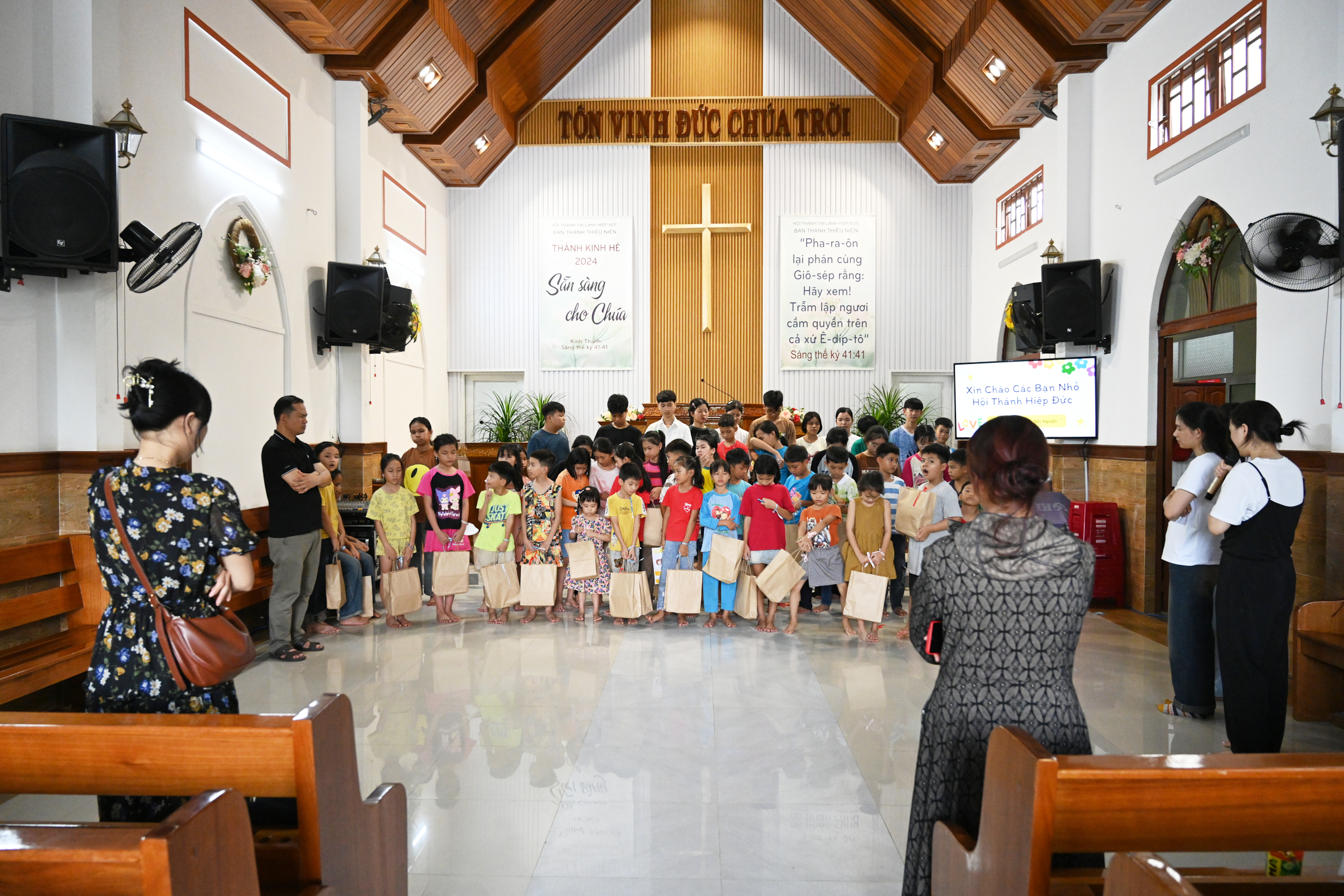 We partnered with Hiep Duc Church to carry out social work, giving gifts and guiding children in meaningful prayer.
